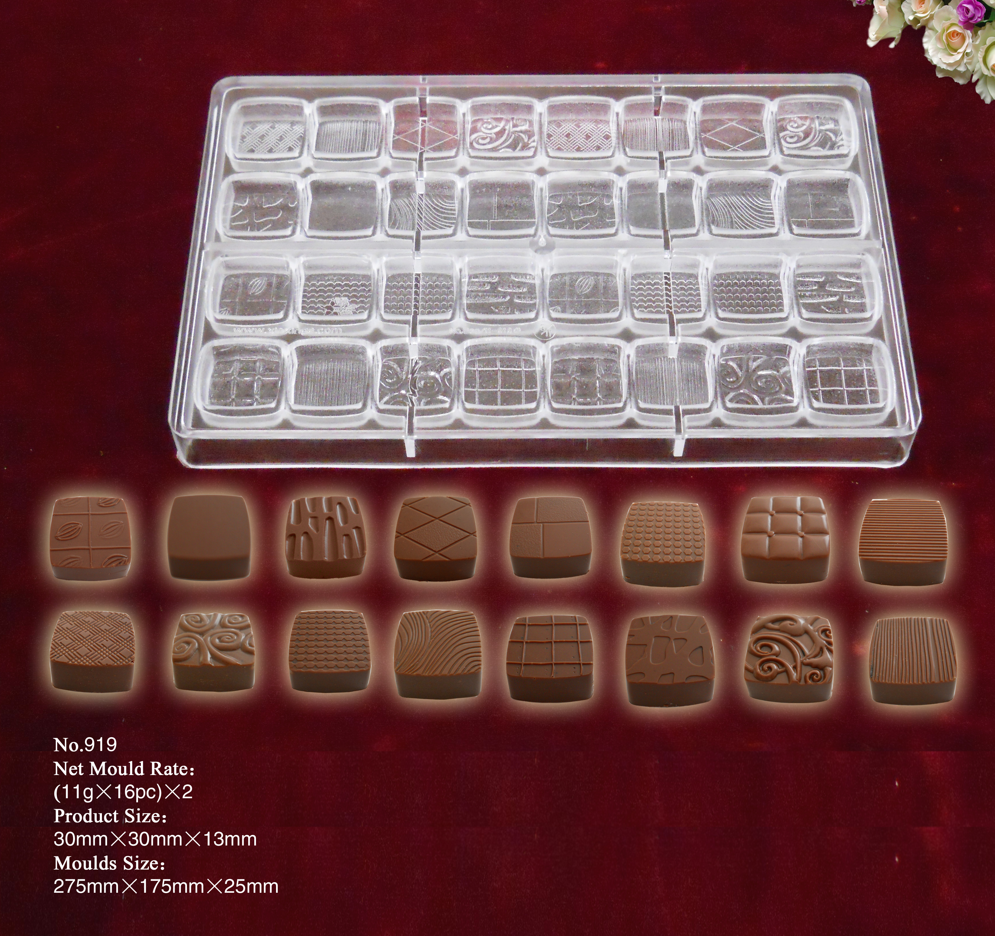 PC系列巧克力印模系热固塑型工艺生产的产品,具有表面光泽,抗冲耐温性能良好,产品在外界-10℃~100℃温差范畴内,保证产品品质不变
