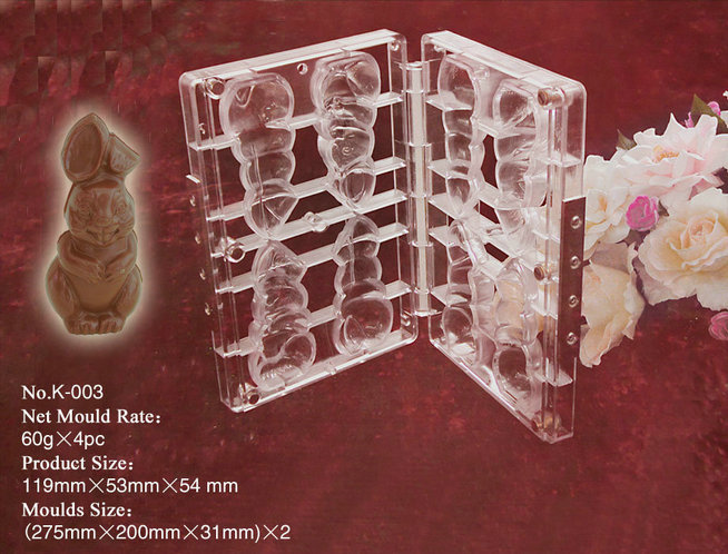 PC系列巧克力印模系热固塑型工艺生产的产品,具有表面光泽,抗冲耐温性能良好,产品在外界-10℃~100℃温差范畴内,保证产品品质不变