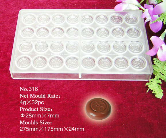 PC系列巧克力印模系热固塑型工艺生产的产品,具有表面光泽,抗冲耐温性能良好,产品在外界-10℃~100℃温差范畴内,保证产品品质不变