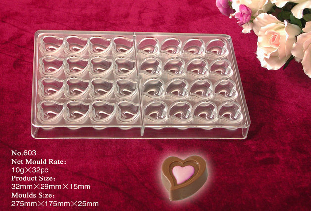 PC系列巧克力印模系热固塑型工艺生产的产品,具有表面光泽,抗冲耐温性能良好,产品在外界-10℃~100℃温差范畴内,保证产品品质不变